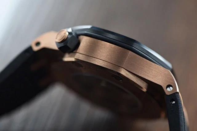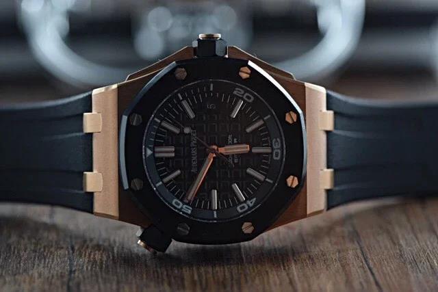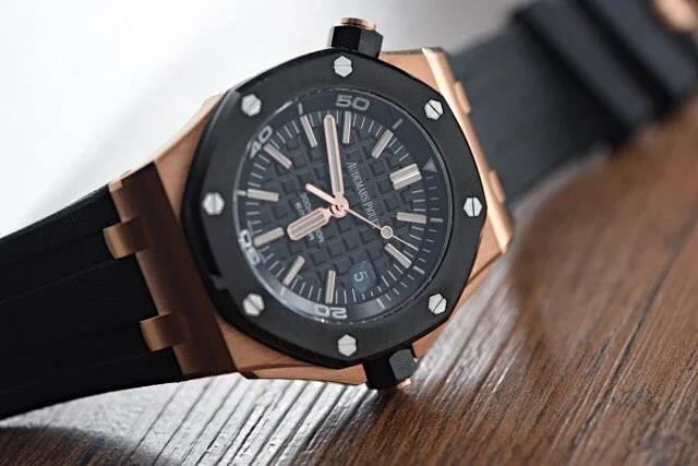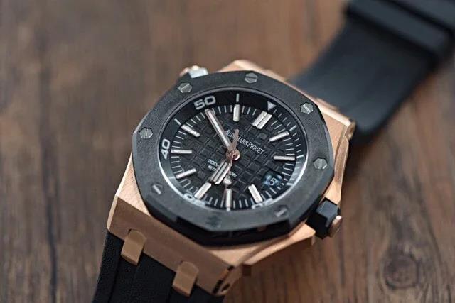 JF皇家橡树离岸经典金壳陶瓷圈!42mm直径,前后蓝宝石镜面,9015复质3120机芯,天然橡胶表带。